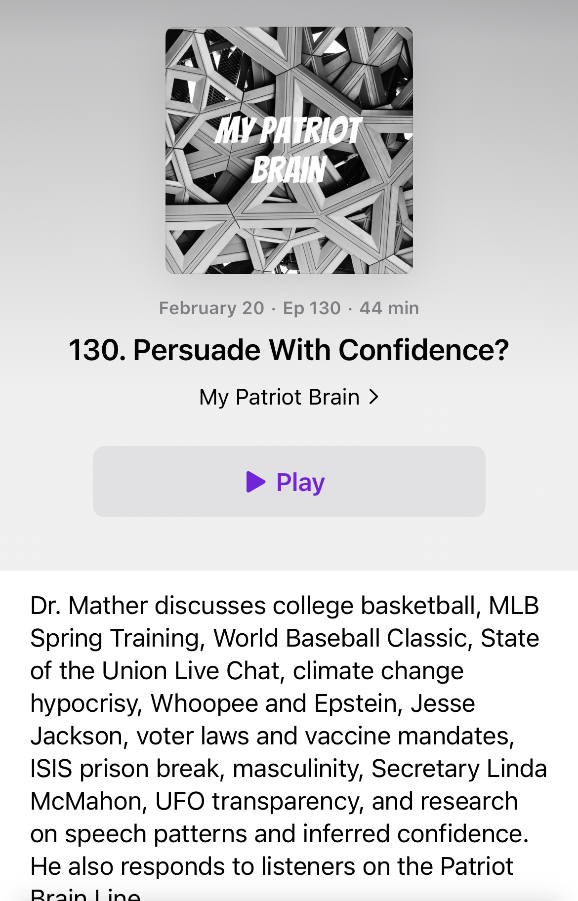 My Patriot Brain community is a place for listeners of the My Patriot Brain Podcast to engage. The podcast is hosted by Dr. Robert Mather, a Christian conservative behavioral scientist. The community engages in discussions of psychology research, politics, and sports.